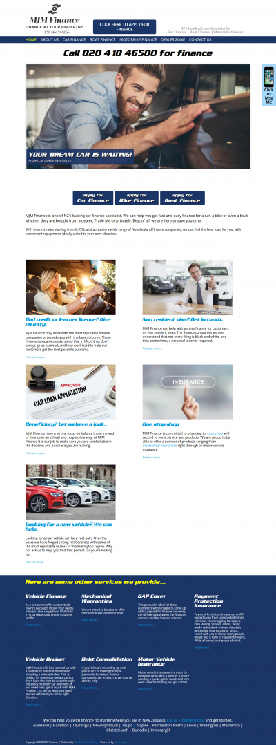 MJM Finance is a small loan broker specialising in finding loans for cars, boat and bikes. The main part of the site are the various application forms which require a fair amount of customer-side validation. The nature of the loans business means that the site must be attractive, fast, robust, and allow people to upload scanned or photographed documents,